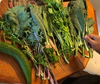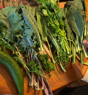 My best friends and family. Locally grown and feeding hundreds of greatful shareholders. Please click the link to view their website. Our ingredients are fundamentally spring water, celery, green kale, black kale, dandelion, collards, pineapple, ginger, and coconut water. Ingredients change weekly and with delivery, new ingredients are listed.